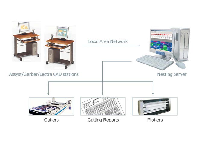 - Special features developed, dedicated to apparel industry, such as: automatic nesting for checked fabrics and for tubular or folded fabrics, the fusing-block definition